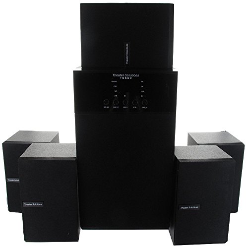 Theater Solutions TS509 5.1 Home Theater Speaker System is a compact, high-definition 5.1 home theater system that's simple to set up and use. The TS509 features a Pro Surround channel switch to integrate all your surround formatted movies, music and games and deliver a true surround experience. The Speaker system consists of five speakers - left, center and right front channels with two rear surrounds - and one powered subwoofer. All five speakers in this home theater are identical, creating a seamless blend of sound and style. Inside each modern, high-gloss black enclosure, you'll find durable, high-quality components that will provide superior performances for years to come. Each speaker is magnetically shielded - so it won't interfere with your TV picture - and can be positioned vertically or horizontally next to your HDTV or other type of flat-panel. This home theater system's subwoofer delivers class-leading, room-shaking bass thanks to a powerful digital hybrid subwoofer amplifier and a 5.25-inch driver. Featuring a sleek black high-gloss finish, this hard-hitter also includes an at your fingertips remote, so you can customize the level of bass for your room and independently control the front, rear, and center channel speaker. Sound accounts for half of the home theater experience, whether you're watching a movie or sporting event - or even playing a video game. Your TV is only one piece of the puzzle. It's the audio that drives the action, creates the mood and brings your video content to life. So, make the TS509 part of your home entertainment today.Feature