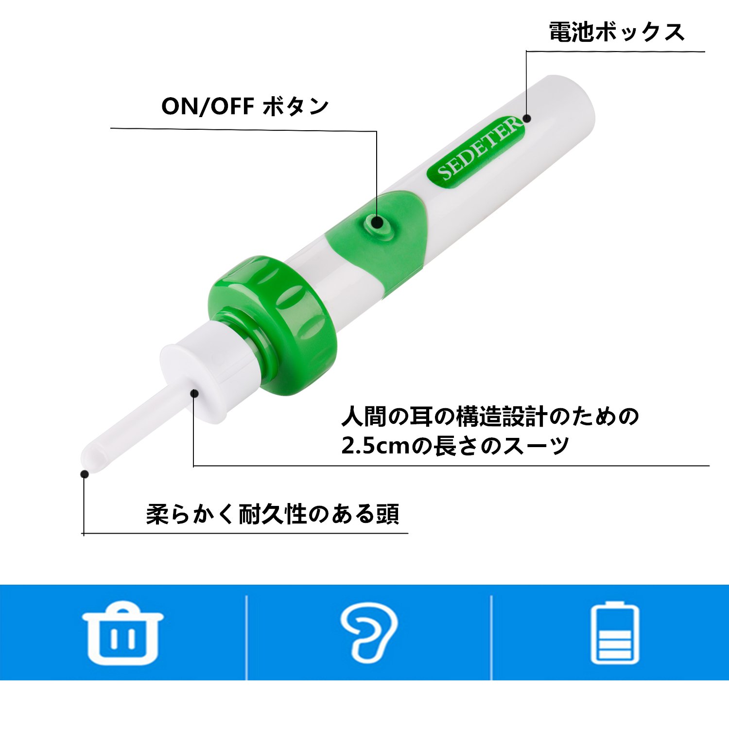 Furthermore, since the distance of the average inner ear of human being (2.5 cm) is calculated with the stopper, you can use it for the elderly person as well.