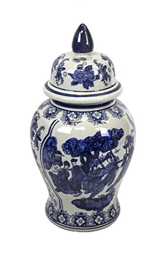 Sagebrook Home VC10369-02 Ceramic Temple Jar, 10" x 10" x 18.5", Blue/White