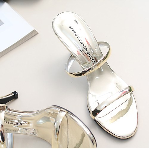 商品名:サンダル レディース ミュール ピンヒール キラキラ 2018 夏 ファッション 靴 婦人靴
