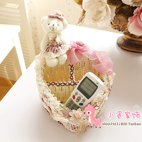 | Special Features: | Cute blue remote control, using high-quality straw, hand-woven. Bear head above the basket playful cute, retro rose pattern, do not have a taste |