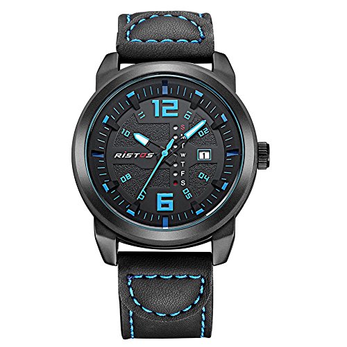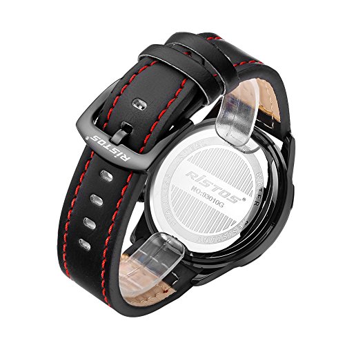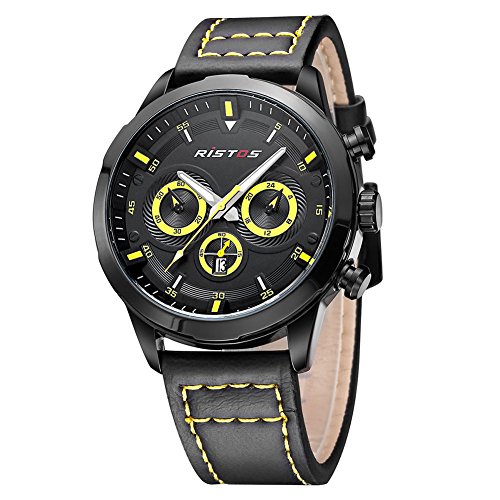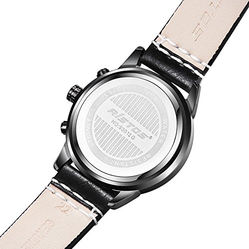 -. Title : Rockyu ブランド 人気 腕時計 メンズ クロノグラフ レディース 防水 時計 野外 スポーツウォッチ 耐久 夜行 スポーティー サファイアガラス ブラック レザー 革 バンド [並行輸入品]