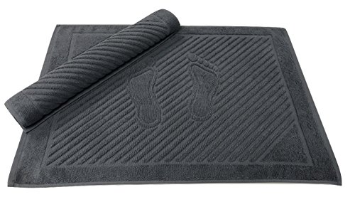 IDEAL SIZE - Set includes 2 cotton bath mats measuring 20 x 28 inches each. Towel-like bath mat offers added safety and a warm, dry place to stand when stepping out of the shower.