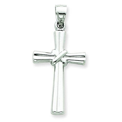 14k White Gold Cross Pendant - Measures 33.7x16.4mm - .9 Grams in 14k White Gold - Product Attributes: - 3-D - Hollow - Polished - JewelryWeb Style: QTP67601NC - FREE gift-ready jewelry box - This Item Does Not Ship With a Chain