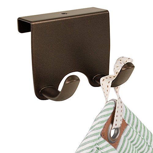 mDesign Over-the-Cabinet Kitchen Storage Double Hook for Dish Towels, Pot Holders - Bronze