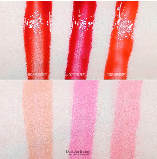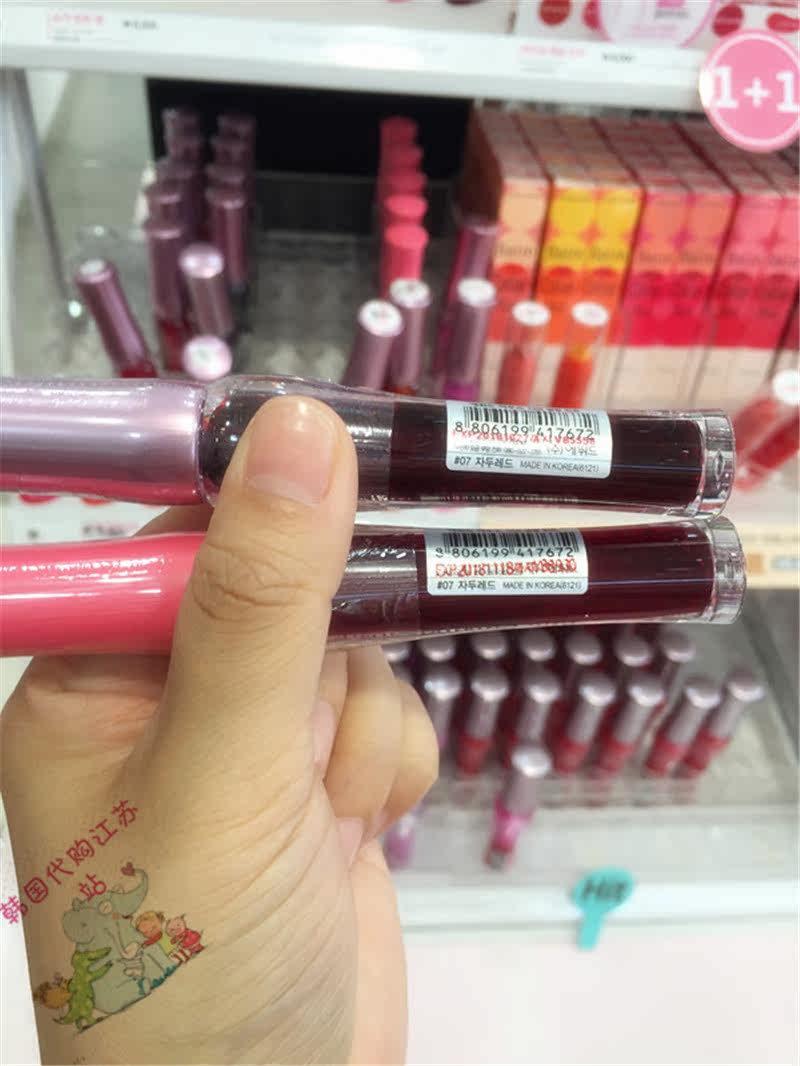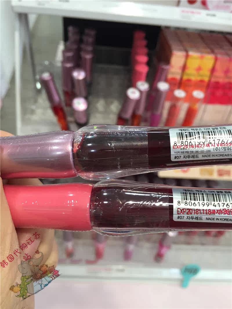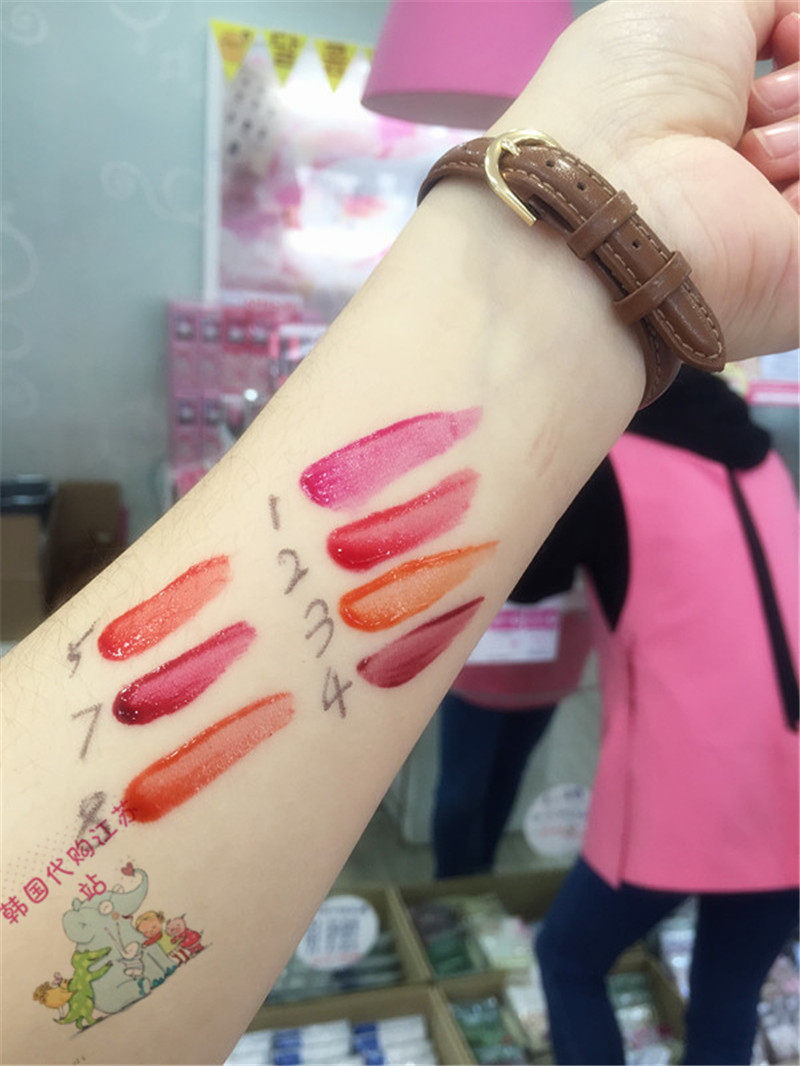 今年爱丽小屋相继推出了很多小彩妆的10周年限量款,这个染唇液的限量款是5#7#8#,所以唇釉外包装会有点不一样,里面颜色都是一样的,两种包装随机发哦!