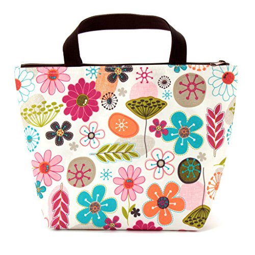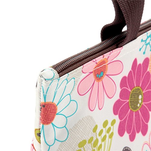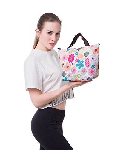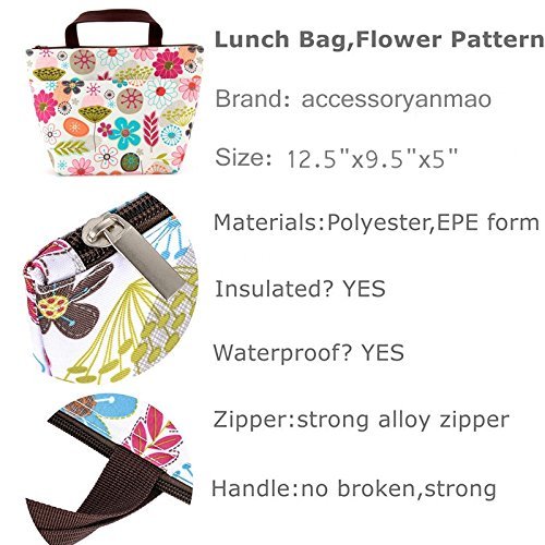 Lunch Bag Flower Lunch Box Insulated Lunch Bag with 2 Handles Lunch Bag for Women with Outside Pocket Flower Pattern