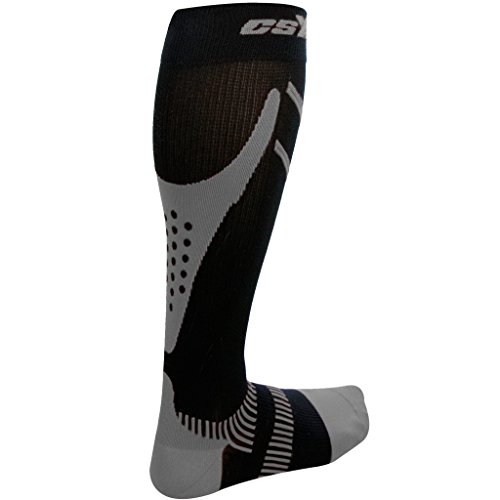 CSX Compression Socks for Men and Women, 15-20 mmHg, 1 pair, Silver on Black, Medium