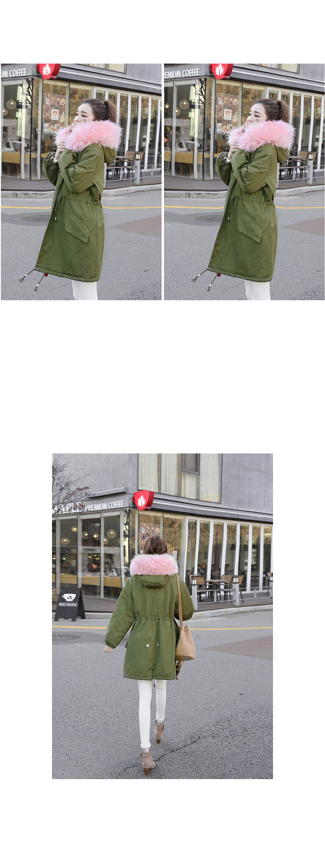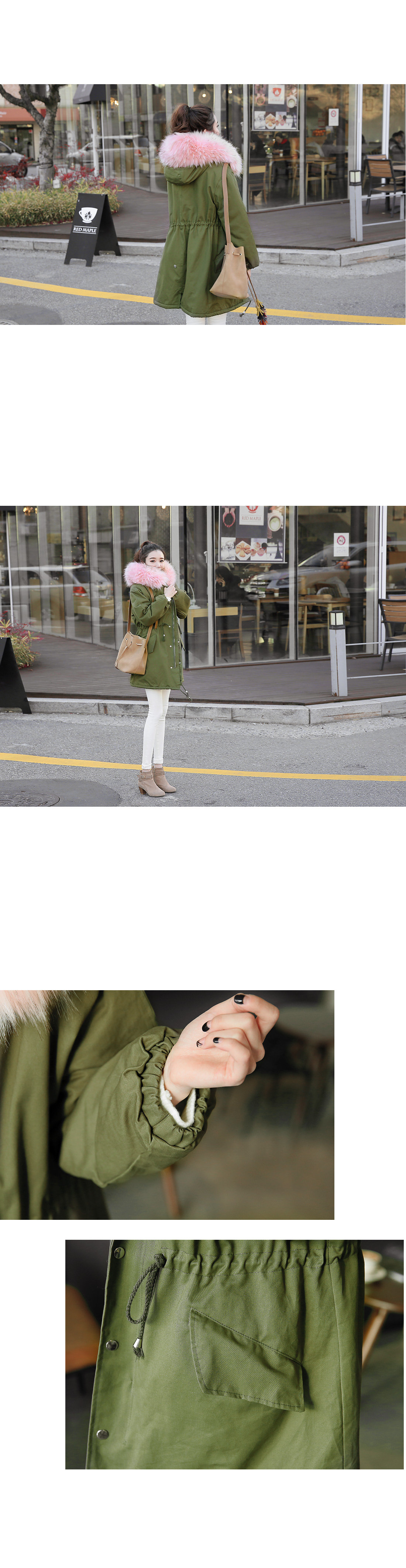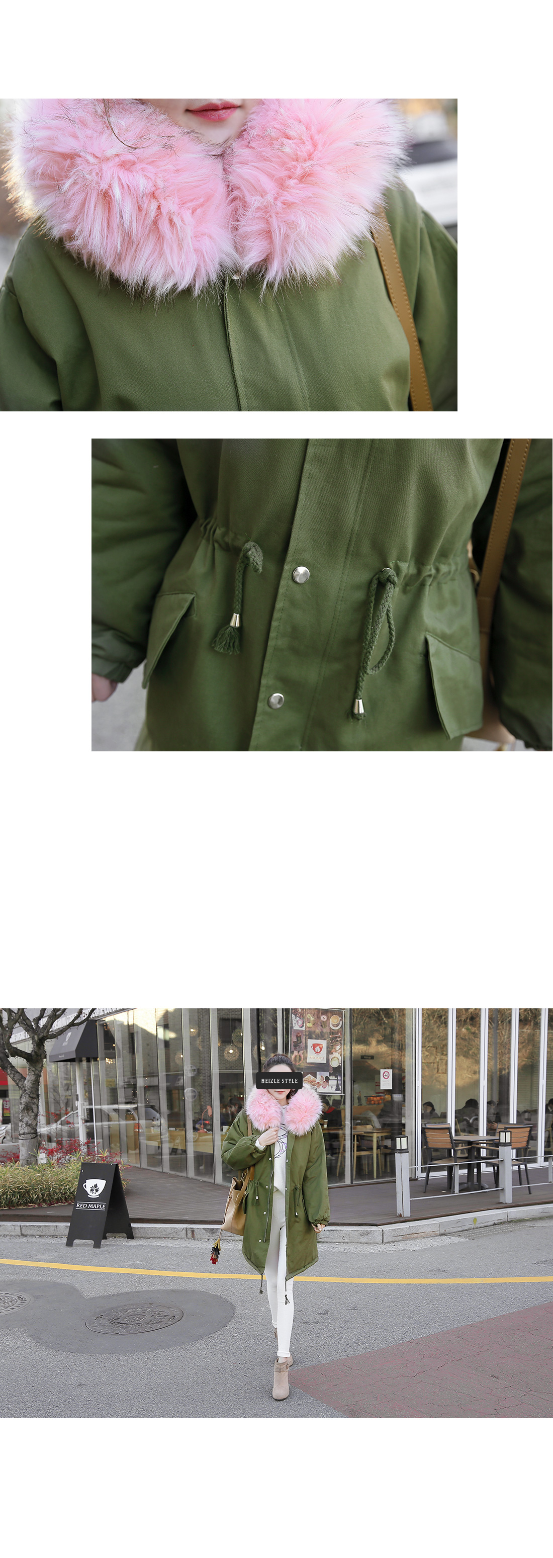 러블리한 캐주얼룩을 완성하는핑크퍼의 루즈핏 사파리에요!어깨가 드롭될 정도의 루즈핏으로편안함은 물론 체형커버에도 도움을 주구요허리는 스트링으로 조절이 가능해다양한 실루엣도 연출할 수 있답니다~후드와 안감은 핑크퍼가 포인트되어러블리한 무드를 연출해 주면서높은 보온성을 자랑하는 겨울 아우터구요!심플한 디자인으로 다양한 룩에손쉽게 연출할 수 있는 퍼안감의 야상점퍼에요^^