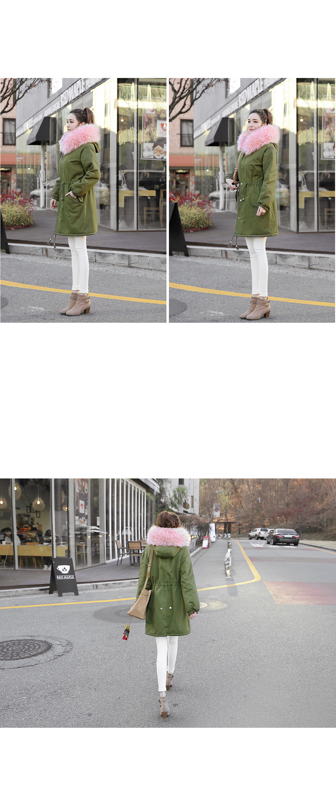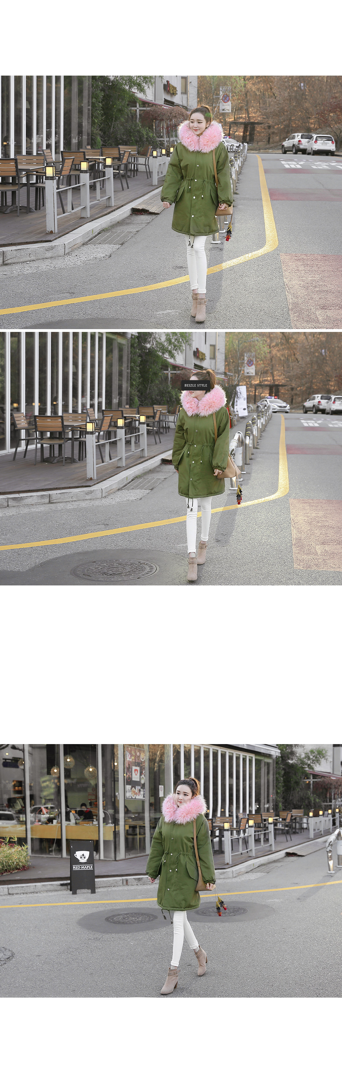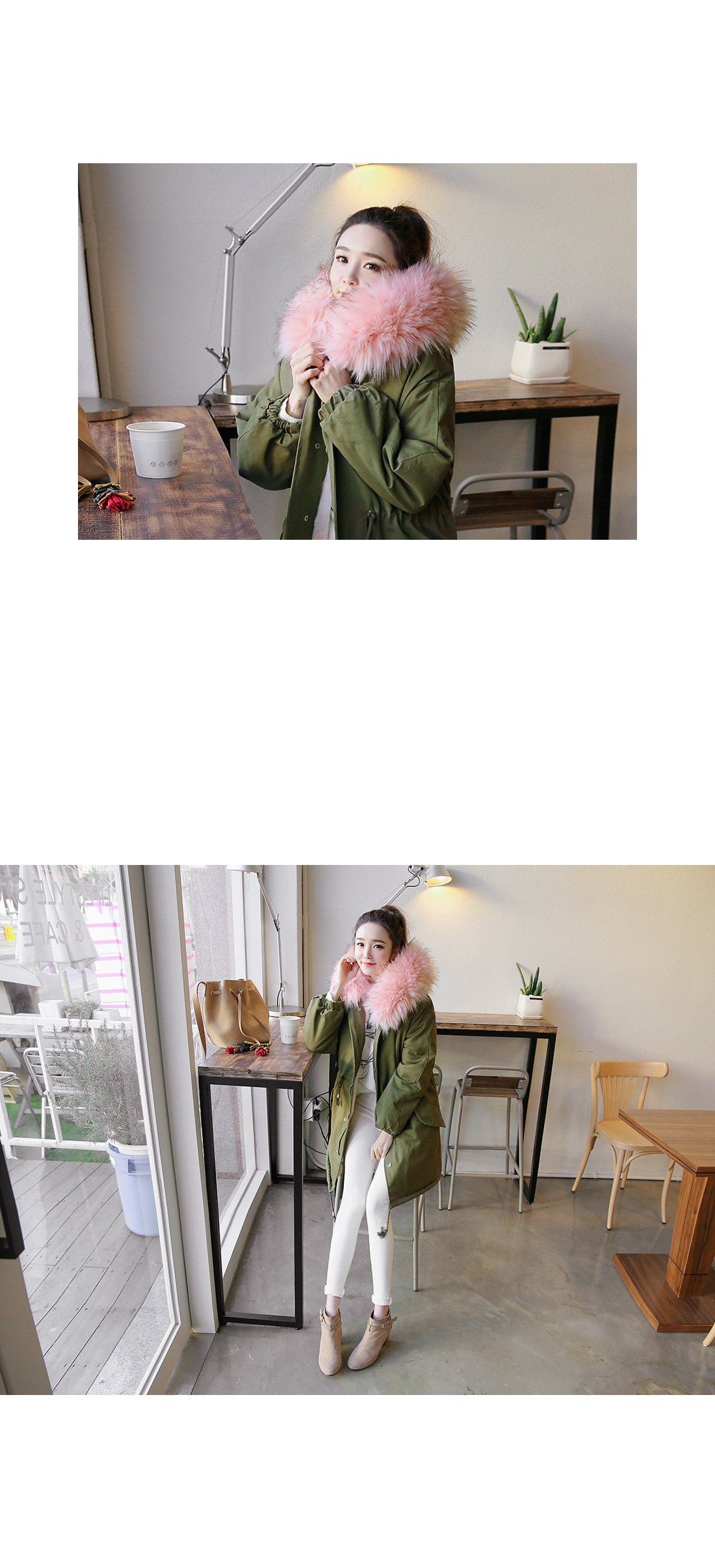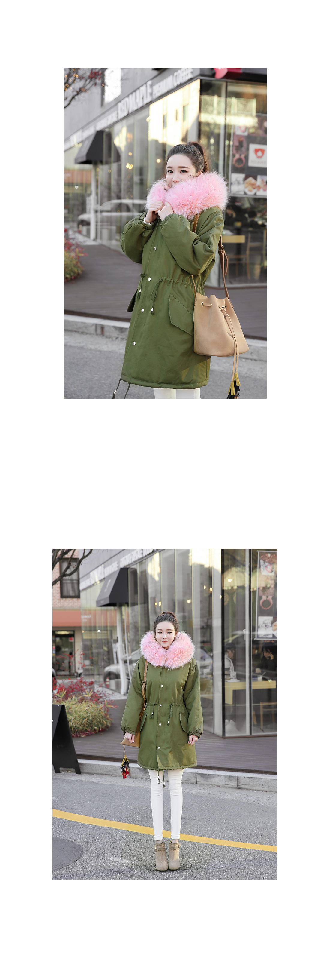 러블리한 캐주얼룩을 완성하는핑크퍼의 루즈핏 사파리에요!어깨가 드롭될 정도의 루즈핏으로편안함은 물론 체형커버에도 도움을 주구요허리는 스트링으로 조절이 가능해다양한 실루엣도 연출할 수 있답니다~후드와 안감은 핑크퍼가 포인트되어러블리한 무드를 연출해 주면서높은 보온성을 자랑하는 겨울 아우터구요!심플한 디자인으로 다양한 룩에손쉽게 연출할 수 있는 퍼안감의 야상점퍼에요^^