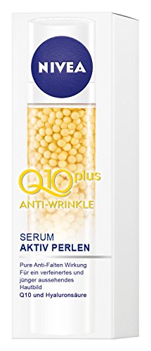 -. Binding : Health and Beauty -. Brand : Nivea -. Department : men, women, unisex-adult -. EAN : 4005900104366 -. Feature : For the first time in NIVEA history, innovative Serum Pearls containing Q10 have been combined with a moisturising gel in a highly efficient anti-wrinkle product. / The formula with coenzyme Q10, hyaluronic acid and creatine visibly reduces wrinkles and effectively delays the onset of new ones. -. IsAdultProduct : 0 -. Label : Nivea -. Manufacturer : Nivea -. Model : 86490 -. MPN : 86490 -. PackageQuantity : 1 -. PartNumber : 86490 -. ProductGroup : Beauty -. ProductTypeName : BEAUTY -. Publisher : Nivea -. Studio : Nivea -. Title : NIVEA Q10 Active Facial Serum Pearls 40 ml