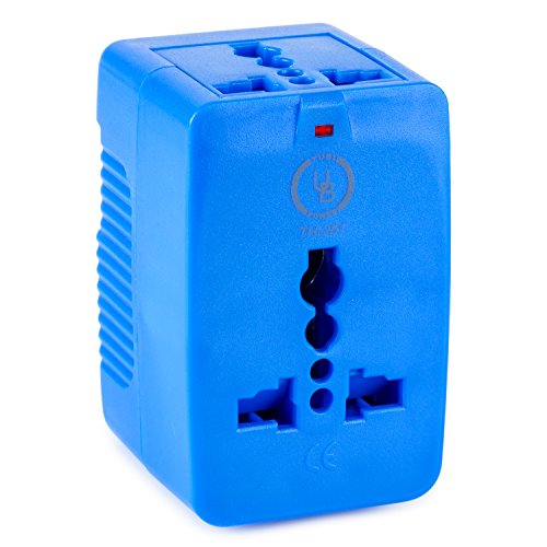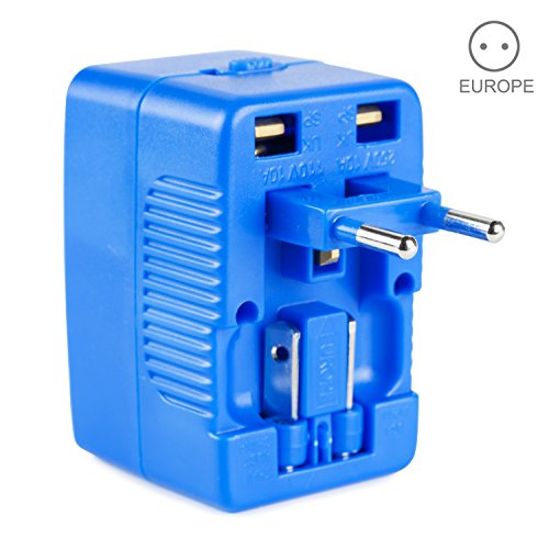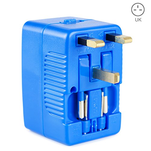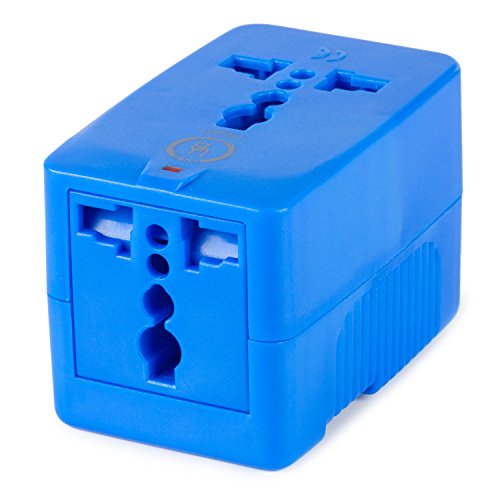 Yubi Power Dual Outlet Travel Adapter with 2 Universal Outlets - Built In Surge Protector and Neon Light Indicator - Foldable Prongs for Type A, C, G, and I Outlets | Works In 150+ Countries - Blue