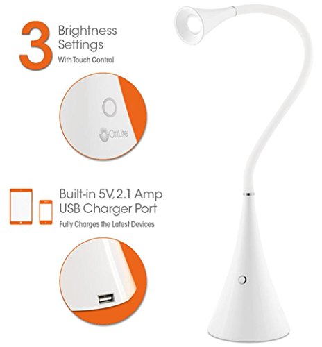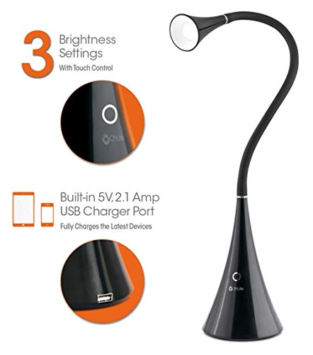 -. Title : OttLite A59G5B-FFP Led Flexneck Desk Lamp with USB (5V, 2.1A), Black, 3 Brightness Settings, Flexible Adjustment, Office Lamp