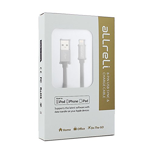 [Apple MFI Certified] aLLreLi 9.8ft Apple Lightning to USB Cable [Slim Fit Series] - Superior Quality Sync and Charging Lead, Perfect for iPhone 6 / 6 Plus / 5S / 5C / 5, iPad 4 / Air / Air 2 / Mini / Mini 2 / Mini 3, iPod 5th / nano 7th generation (