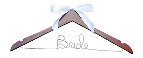 -. Title : Bride Hanger for Wedding Dress on Mahogany Wood Premium Hanger with Silver Wire