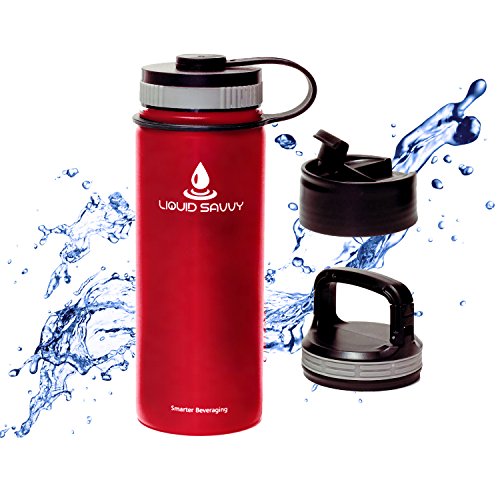 -. Title : 18 oz Insulated Stainless Steel Water Bottle with 3 lids - Wide Mouth Double Walled Vacuum Bottle for Hot and Cold Beverages by Liquid Savvy