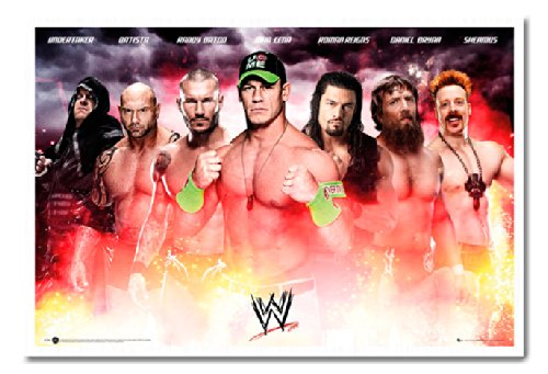 -. Title : WWE Collage Poster Magnetic Notice Board White Framed - 96.5 x 66 cms (Approx 38 x 26 inches)