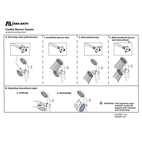 Ana Bath 6 Inch 3 Function Handheld Shower and Showerhead Combo Shower System with 8 Foot Hose Brushed Nickel Finish SS323224CBN