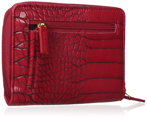Exotic croco man-made material with gold tone hardware nile exotic medium zip-around features an outside back zipper pocket, 3 sided zipper opens to 2 large bill compartments, six credit card slots, 4 slip pockets and i.e. Window.Feature
