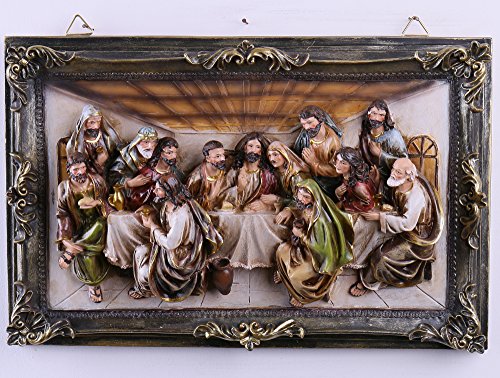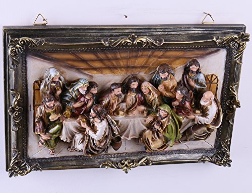 16-Inch Christmas Last Supper Wall Hanging Plate Décor Resin Cameo Sculpture Plaque