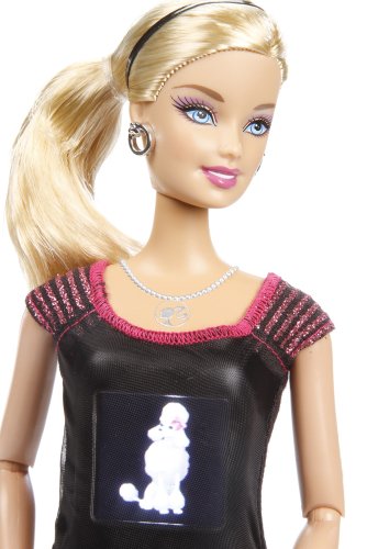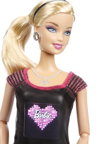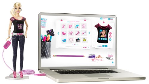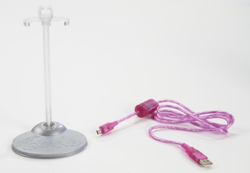 Includes Barbie doll with embedded digital camera and LCD screen, stand, USB cable, rechargeable battery and instructions