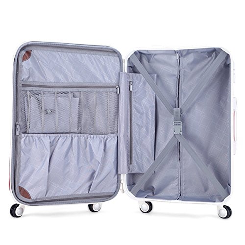 -. Feature : Multicolor / ABS+PC / Aluminum telescoping handle / Interior mesh zip pocket and elasticated / Multi-directional spinier wheels
