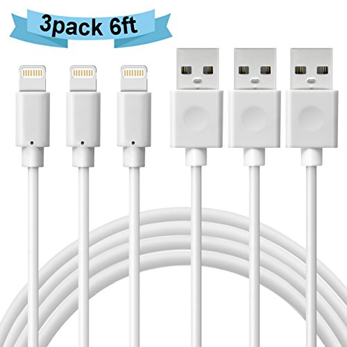 iPhone Cable Cord Nikolable Charging Cable 3 Packs 6ft Lightning Cable Charging and Syncing Cord for iPhone iPhone 7 7 Plus 6s 6s Plus 6 Plus 6 5s 5c 5 iPad Mini Air iPad 5 iPod (White)