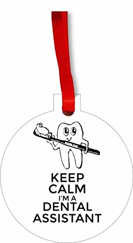 Keep Calm I'm a Dental Assistant Round Flat Hardboard Holiday Tree Ornament Made in the U.S.A.