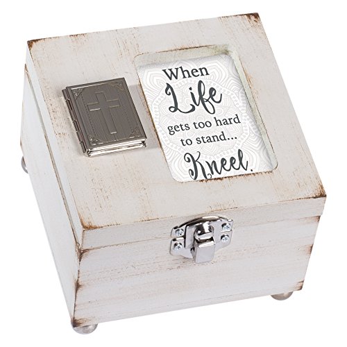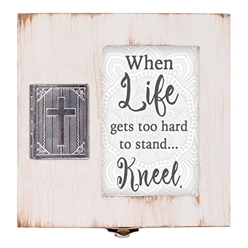 When Life Gets Hard Kneel Distressed Gray Wood 4.5 x 4.5 Inch Locket Jewelry Keepsake Box