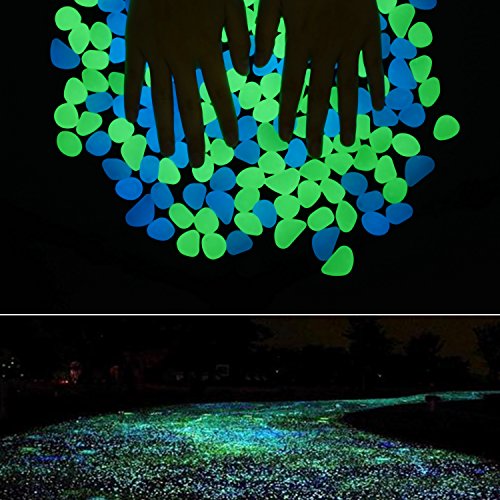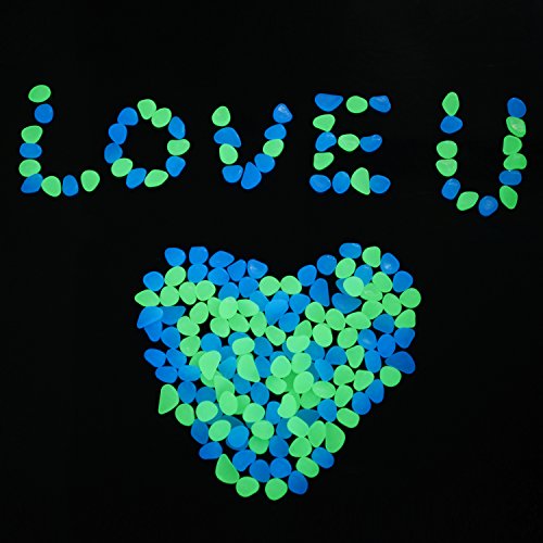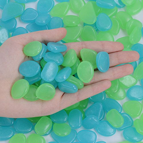 Boomile Glow in the Dark Garden Pebbles for Walkways Outdoor Decor Aquarium Fish Tank Garden Decorative Stones for Path Lawn Yard Walkway in Blue & Green (200 Pack)