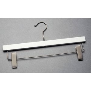 -. Brand : Retail Resource -. Color : White -. Feature : Ideal solution for hanging bottom pieces or strapless articles / Chrome grips to firmly grasp clothing / Flat body style allows for more space on racks -. Label : NATIONAL HANGER COMPANY -. Manufacturer : NATIONAL HANGER COMPANY -. MPN : 211-14RC -. NumberOfItems : 100 -. PartNumber : 211-14RC -. ProductGroup : BISS -. ProductTypeName : LAB_SUPPLY -. Publisher : NATIONAL HANGER COMPANY -. Studio : NATIONAL HANGER COMPANY -. Title : Wooden Pant Hanger 14" White Case of 100