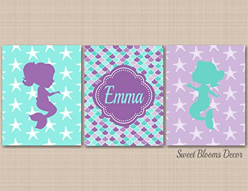 -. Title : Mermaid Décor,Mermaid Wall Art,Mermaid Room Decor,Mermaid Nursery,Sea Animals Bathroom Wall Art,Mermaid Bathroom,Purple Teal Mermaid Art-UNFRAMED set of 3 PRINTS (NOT CANVAS)C341