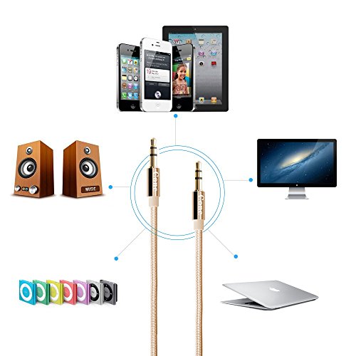Designed with beveled step down connector, you can firmly secure connection even when protective case place on your device. No More Tangles Premium metal housing makes it impossible for our audio stereo Aux cable cord to tangle. Finally, you can pack your cable in your bag and not end up with a mess, I deally to use at home, car and outdoor.