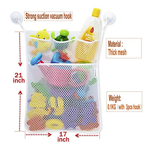 Bath Toy Organizer Bathroom Tub Storage - 3 Bonus Suction Cups Hook Machine Washable, White