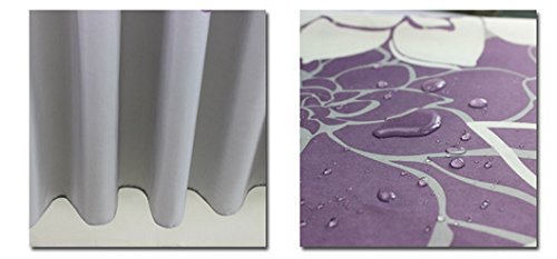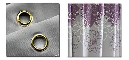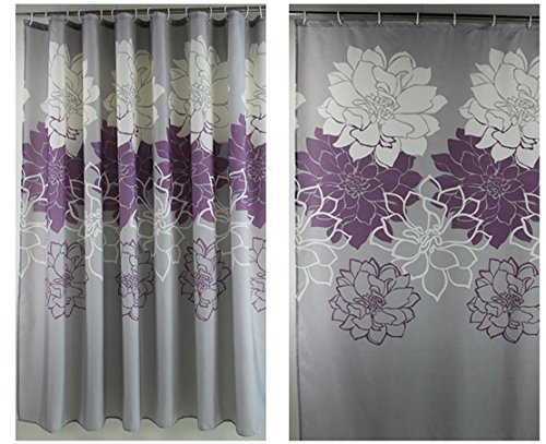 Eforgift 72-inch By 78-inch Floral Printed Shower Curtain Fabric, Waterproof Bathroom Curtains No More Mildews with Free Rings, Purple/Grey