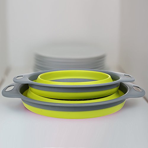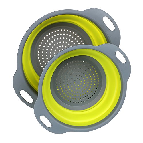 Sturdy design fits almost all sink shapes size,wash or rinse fruits,vegetables,berries,herds,meats or other foods Great Colander for camping and easy storage in the kitchen Drainage smoothly ,take up 1/3 of the space as a regular colander strainer does.