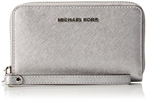 (MICHAEL Michael Kors)/Accessories/Wallets, Money Key Organizers/DIRECT FROM USA/MICHAEL Michael Kors Jet Set Travel Large Metallic Leather Smartphone Wristlet Silver