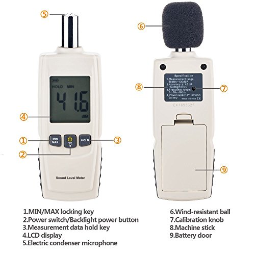 Sound Decibel Level Meter, Amgaze Digital Mini Sound Pressure Level Meter Audio Noise Measurement 30-130dBA MAX /MIN Hold Auto Backlight Display