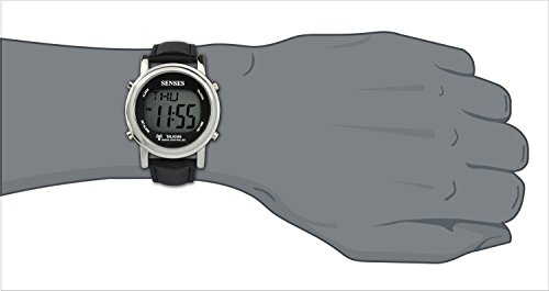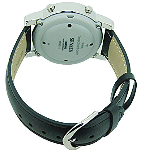 This atomic SENSES Mens Easy-To-Read Talking Watch has an amazing atomic accuracy. It sets itself including adjustment for daylight savings time. Your talking watch clearly talks the time day date month and year and signal reception status in a pleasant male voice at the touch of a button. The SENSES atomic talking watch is great for anyone with a visual problem and is good for time reading in low light condition. Time and calendar of the talking watch are set automatically by the radio Atomic clock signal that is broadcasting on the air through an antenna set up in the country. Never Sets Your Watch Again. Easy-to-read Over-size big LCD digits with backlight is good to read time in daytime and nighttime. Fine polished shinny metal watch case with scratch resistant anti-reflective mineral crystal plus a comfortable leather band. The Atomic Radio Controlled digital Talking Watch only uses one battery (included) for the movement of digital display and digital voice. Please note: Atomic signal from Ft. Collins Colorado is not able to reach states of Alaska and Hawaii (and country of Canada) but the watch time can be set by user manually. However, calendar function will not work without an atomic signal. Buyers from these States and country of Canada are recommended to buy SENSES advanced VHAS non-Atomic talking watch or our easy-to-touch front button LCD digital talking watch. Please visit www.timechant.com and select VHAS Talking Watch (on the Home page of the ??Our Categories??) for details. Our Customer Service provides battery replacement to ease your work! Of course, you can buy battery on the www.timechant.com for easy battery replacement at home. *ALL WATCHES ARE TESTED BEFORE SHIPPING* BY TimeChant (Hong Kong) Limited ?V a company of the New York Standard Watch Company LLC.Feature