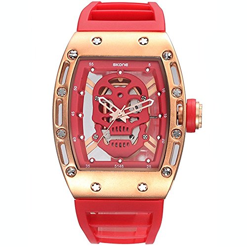-. Feature : Cool Skull Design Fashion Sports Casual Style Watches Best Gift for Men. / Waterproof for Daily Use. / Skull and Crossbones Imported Quartz Movement. / Silicone Watch Band is Flexible and Durable. / 1 * Watch 1 * Luxury Watch Box.