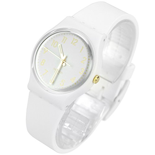 Swatch White Bishop White and Gold Dial Plastic Silicone Quartz Ladies Watch GW164