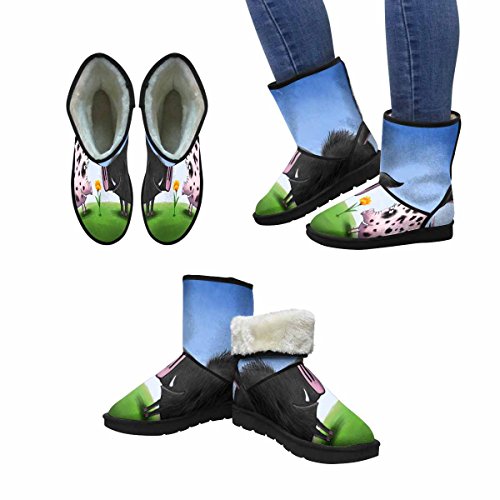 (InterestPrint)/Women's/Boots/DIRECT FROM USA/InterestPrint Women's Snow Boots Two Pigs Male and Female In Love Looking at a Cute Yellow Flow...
