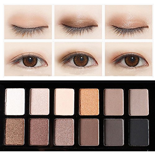 -. Feature : Creates bright, luminous eyes / Delivers pure color for a lustrous finish / Long wear, 8-hour wear that does not fade / Suitable for rendering nude make-up or smokey-eye make-up effect / Pigment 12 Colors Waterproof Eyeshadow Palette Makeup Mixed 6 Matte and 6 Shimmer