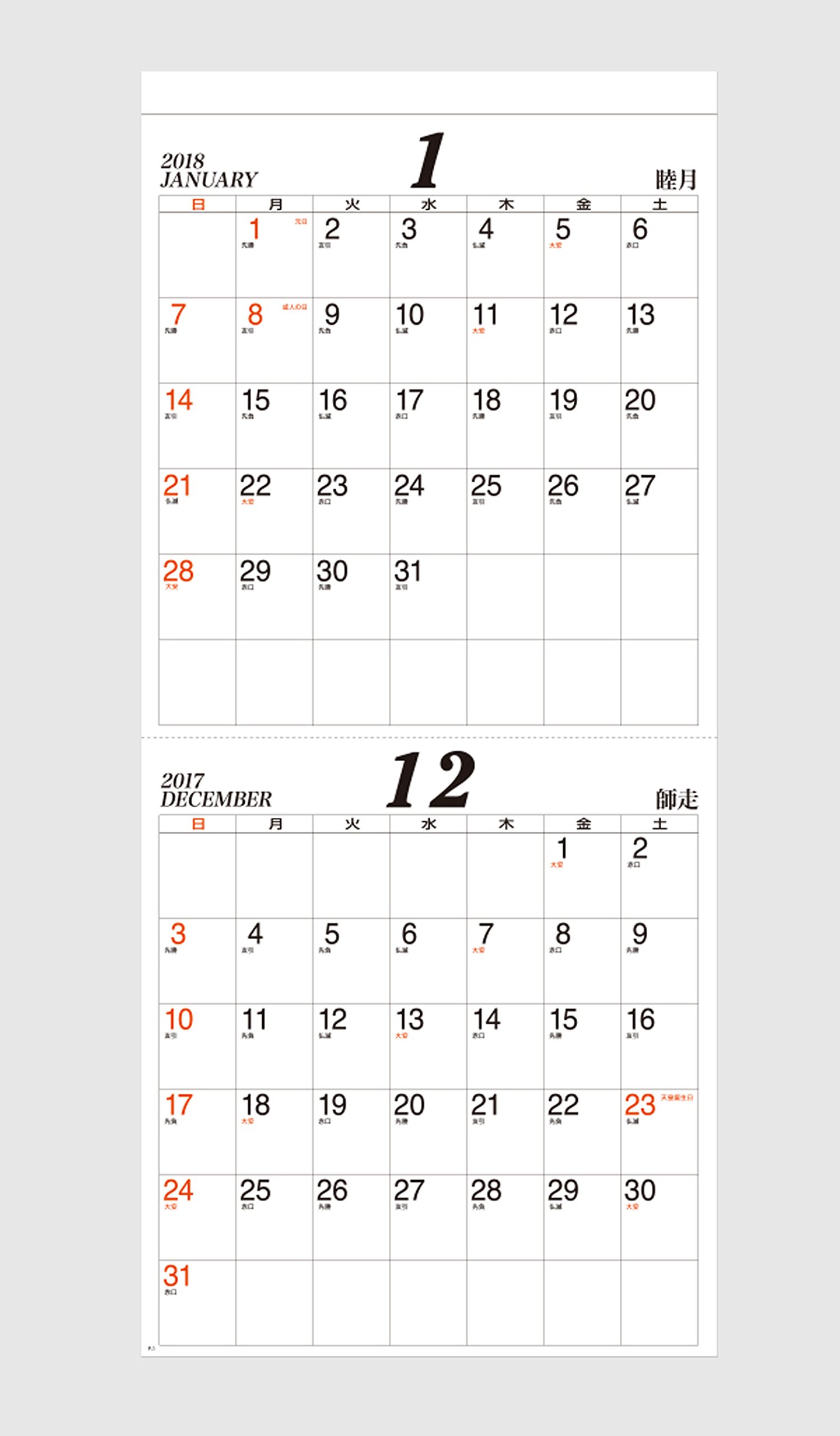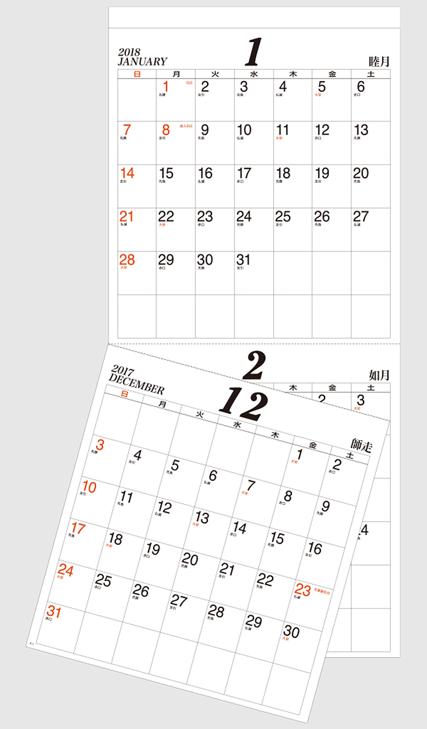 A calendar that can be shared at home, workplace, and everyone Always a practical calendar with plenty of entry spaces that you can see at a glance the schedule of the two months.