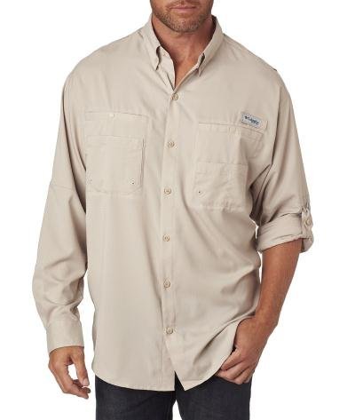 Ideal for longer trips, our lightest weight fishing shirt features Columbia's Omni-Dry technology to keep it fresh and odor-free over multiple wearings. Quick-drying fabric wicks moisture, offers outstanding sun protection, and features plenty of stretch for enhanced range of motion that’s key when casting. At the back shoulder, mesh-lined cape vents provide maximum airflow for breathable comfort. At the front chest, you’ll find deep pockets for stashing gear and a rod holder for hands-free convenience. For added versatility, sleeves can be rolled up and secured with a button tab. Relaxed fit.Feature