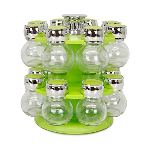 Evelyne GMT-10048-GR Revolving Rotation Spice Rack with Glass Spice Jars (16-Jars, Green)