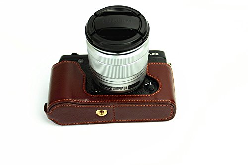 BolinUS Handmade Genuine Real Leather Half Camera Case Bag Cover for Fujifilm XE1 X-E1 XE2 X-E2 Opening Version + Hand Strap -Coffee