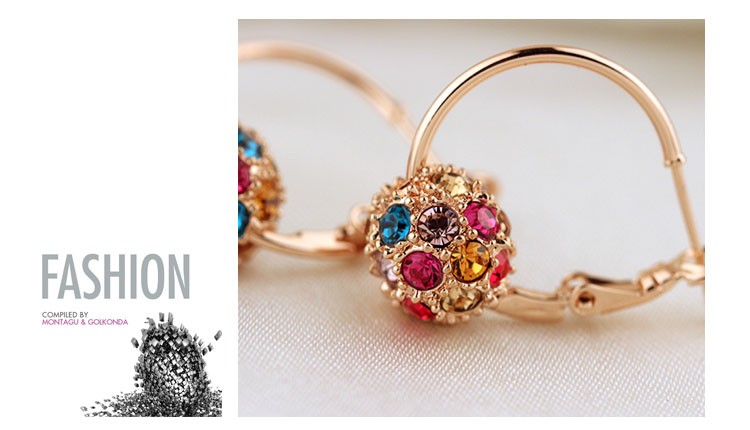 贅沢に詰込んだカラフルスワロフスキーが異なる輝きを放つ、エレガントで上品な印象のピアス。