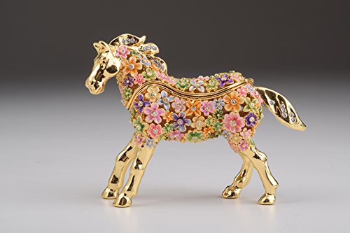 Gold with Colorful Flowers Horse Handmade Faberge Styled Trinket Box