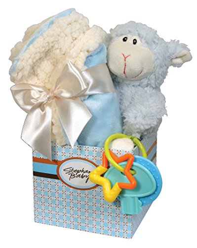 - Feature : Stephan Baby's wooly lamb and security blanket set arrives ready for gift-giving in a handsome blue geometric print gift box / 11" wooly lamb has a baby-safe all-embroidered face and is fashioned of soft and snuggly sherpa fleece, 100% polyester construction, machine wash cold and line dry, do not bleach / Soft security blanket measures 14" x 14" and features velvety velour plush on one side and soft, shaggy sherpa plush on the other, 100% polyester, machine wash cold and tumble dry low, do not bleach / Colorful 100% bisphenol-free plastic key rattle happily clicks clacks and is sure to delight little ones / Since 1987, Stephan Baby has been creating unique and heartwarming gifts for little ones